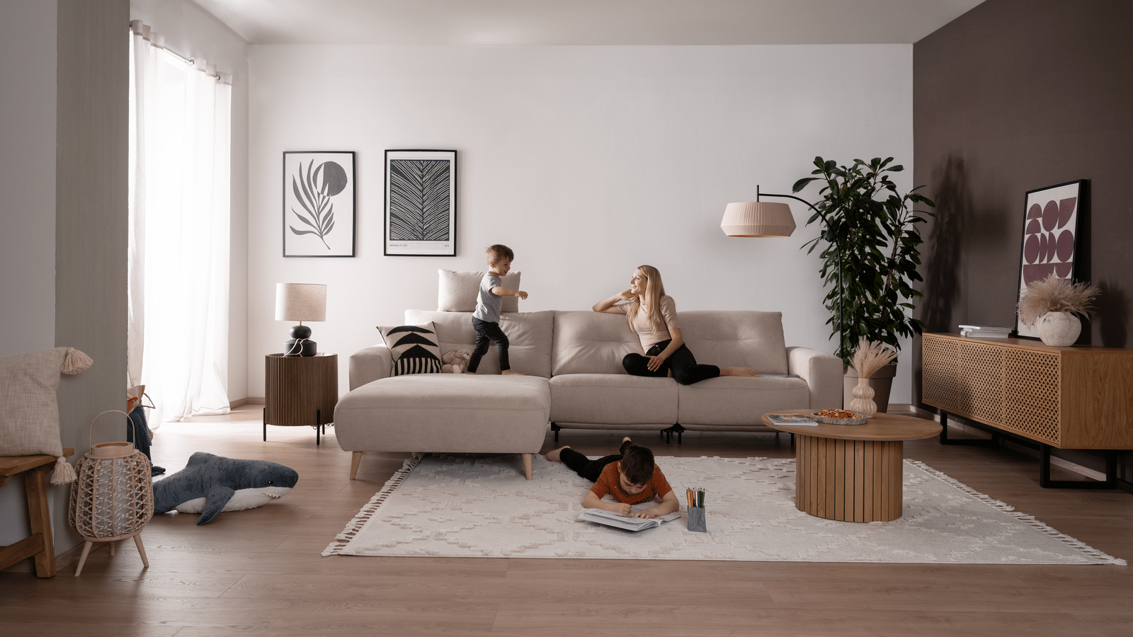 Im Bild: Sofa ALIKA – Happy moments mit unseren Lieblingsmenschen machen unser Zuhause um vieles reicher.