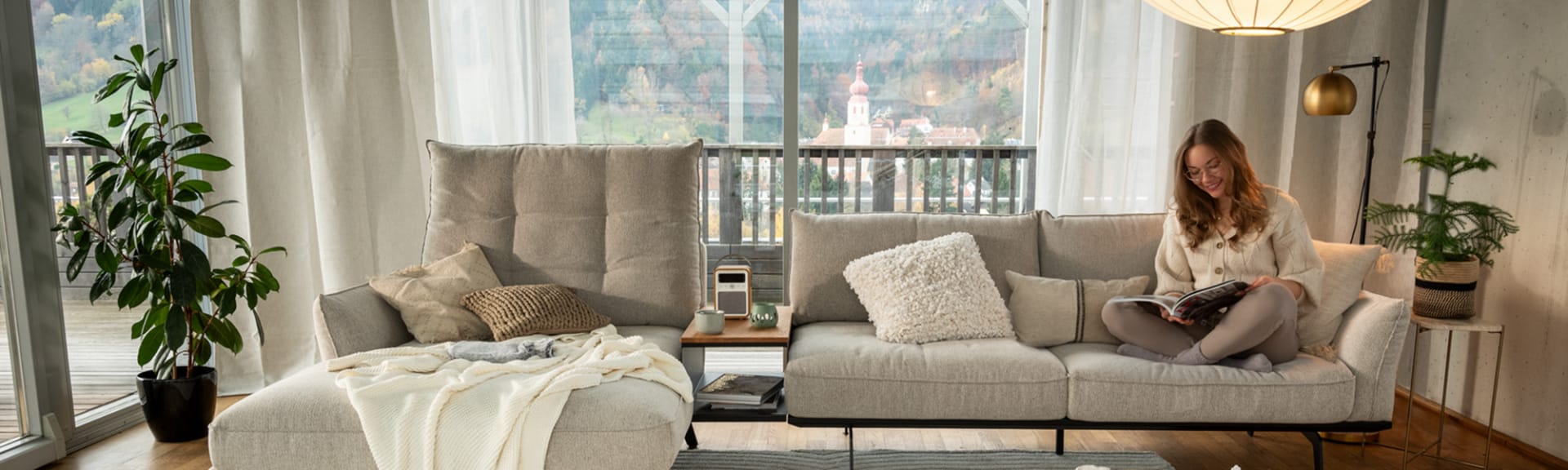 Innovativer Stauraum: Das Sofa SALVIA lässt Fernbedienungen, Taschentücher und andere Alltagsgegenstände geschickt verschwinden.