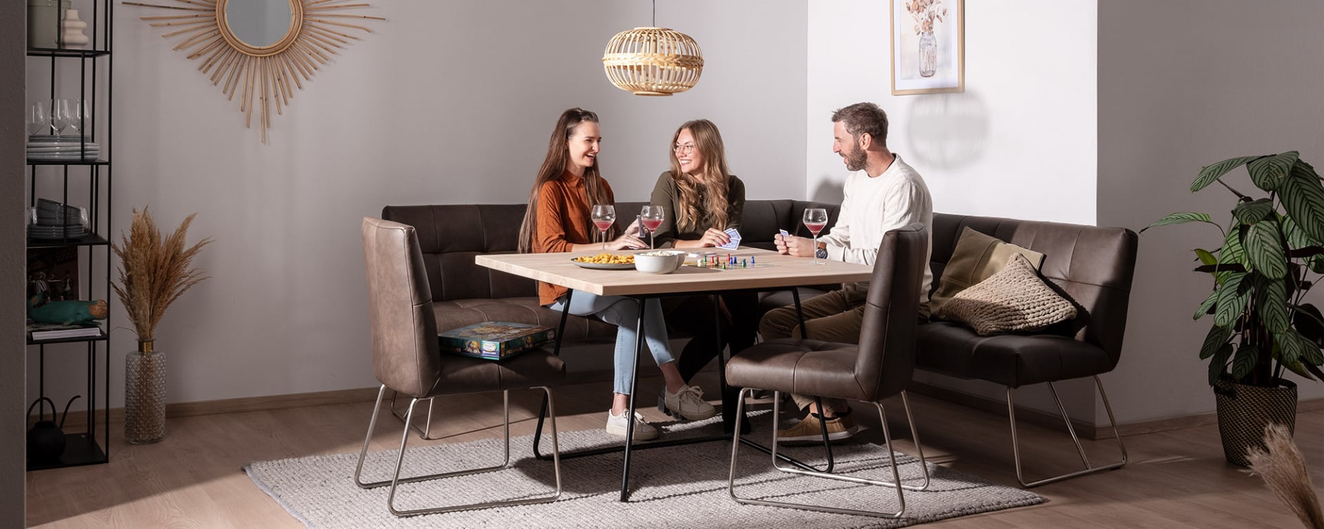 The ANI dining area brings balance to your home: the backrest of the chairs adapts to your movements when sitting. Whether you maintain a forward posture or rock back and forth: the ergonomic backrest moves along with you. Your spine remains flexible while you sit – an ingenious invention called the ADAption function. The ANI bench, on the other hand, is not ergonomic and has a stable backrest. This dining area therefore offers you both flexibility and support – and a wonderful feeling of balance and well-being.