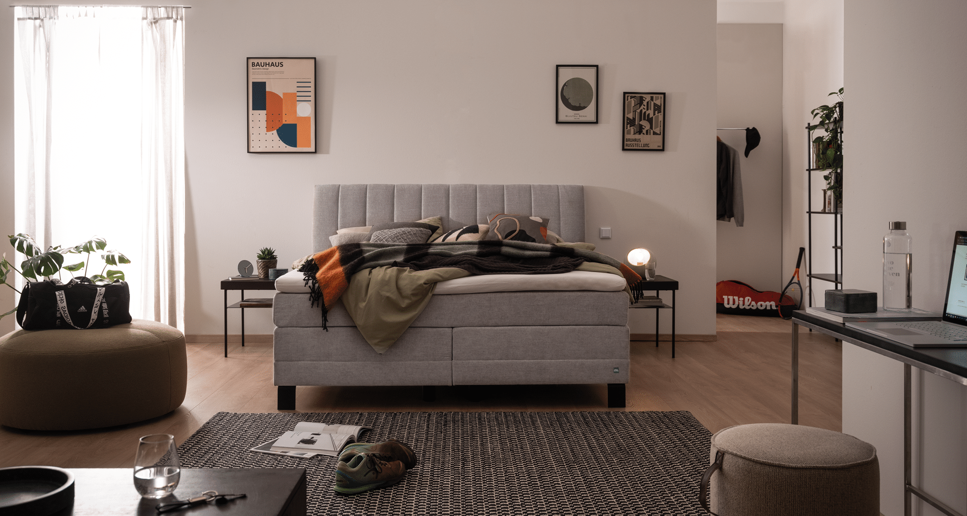 Dein Bett für erholsame Nächte und entspannte Morgen. CAUTUS vereint zwei Systeme in einem Bett. Wähle die Variante mit Lattenrost und geräumigem Bettkasten, um zusätzlichen Stauraum zu gewinnen. Oder entscheide dich für das Boxspringbett, in dem du das typisch federnde Schlafgefühl des mehrschichtigen Aufbaus genießt. Und das i-Tüpfelchen: Die elektrische Kopf- und Fußverstellung – wenn du das möchtest.