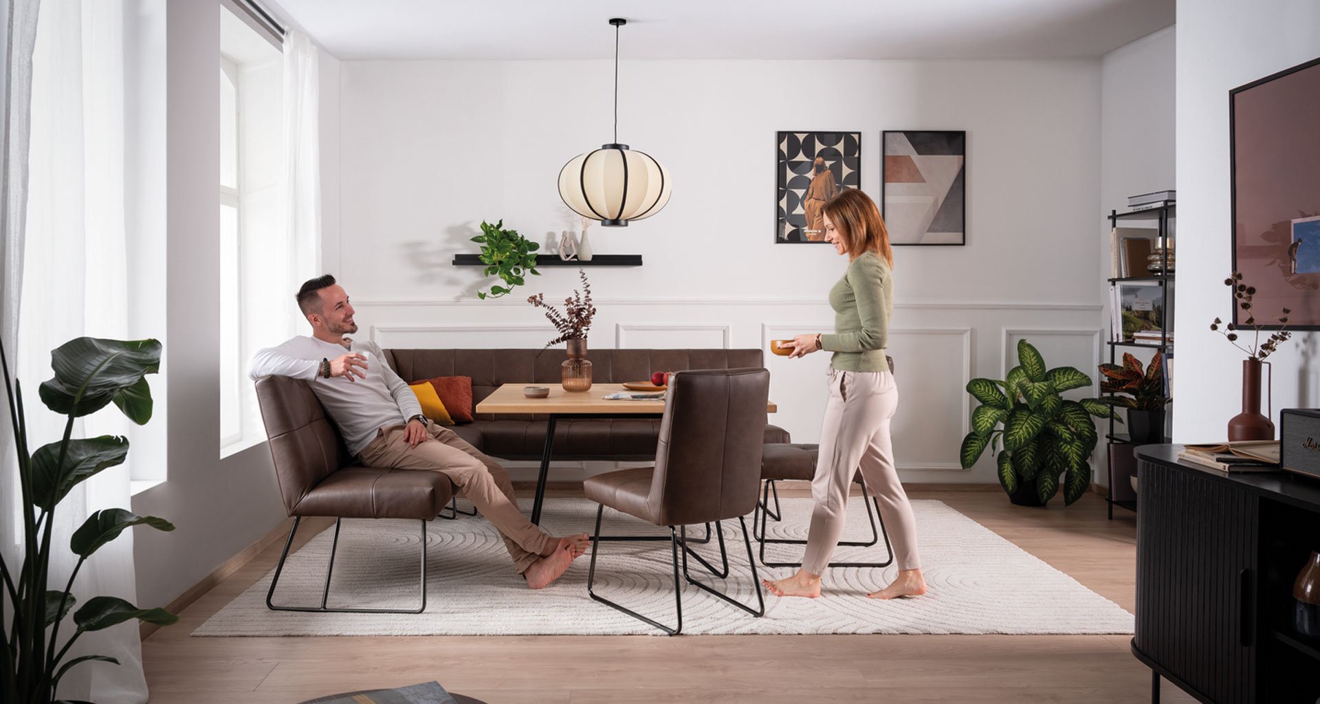 Die Essgruppe ANI bringt Ausgleich in dein Zuhause: Die Rückenlehne der Stühle passt sich beim Sitzen deinen Bewegungen an. Ob du dich nach vorne beugst oder gerne nach hinten wippst: Die ergonomische Rückenlehne macht mit. Während du sitzt, bleibt deine Wirbelsäule beweglich – eine geniale Erfindung, die sich ADAption-Funktion nennt. Die Bank ANI wiederum ist nicht ergonomisch und hat eine stabile Rückenlehne. So bietet dir diese Essgruppe beides: Flexibilität und Halt – und ein wunderbar ausgeglichenes Wohngefühl.