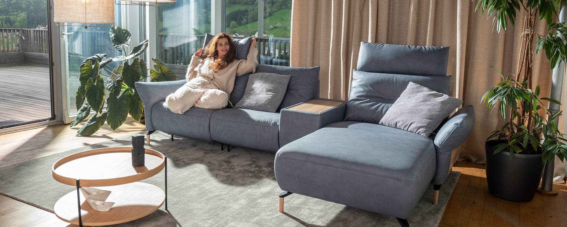 Es ist ein Sofa, das dir den Rücken freihält – wenn du nach dem Alltagstrubel ganz bei dir ankommen möchtest. Mit SALVIA gelingt es auf Knopfdruck: Die Sitze und Rückenlehnen gleiten sanft nach vorne und bieten eine angenehme Liegefläche. Die Wall-Free-Funktion ermöglicht, dass dein Sofa trotz der vielseitigen Verwandlungskünste an der Wand stehen kann. Hin- und Herrücken unnötig! SALVIA gibt dir in deinem Zuhause viel Freiraum und Geborgenheit.